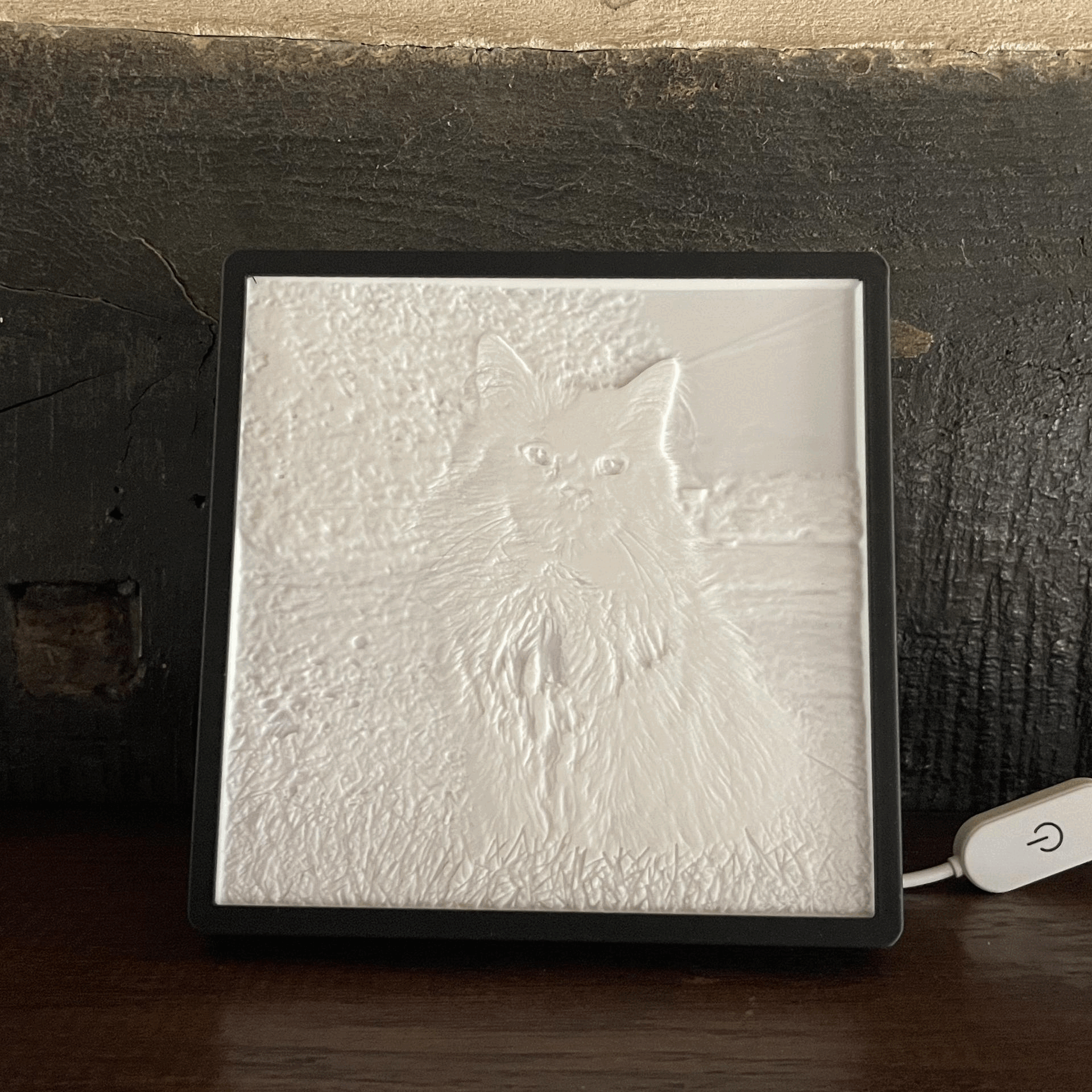 Offrez à vos plus beaux souvenirs une nouvelle dimension avec ce cadre photo lumineux personnalisé. Grâce à une technique unique appelée lithophanie, votre photo est gravée en relief dans un matériau translucide. Lorsqu’il est rétro-éclairée par la lumière intégrée, l'image apparaît avec un réalisme étonnant, comme par magie.